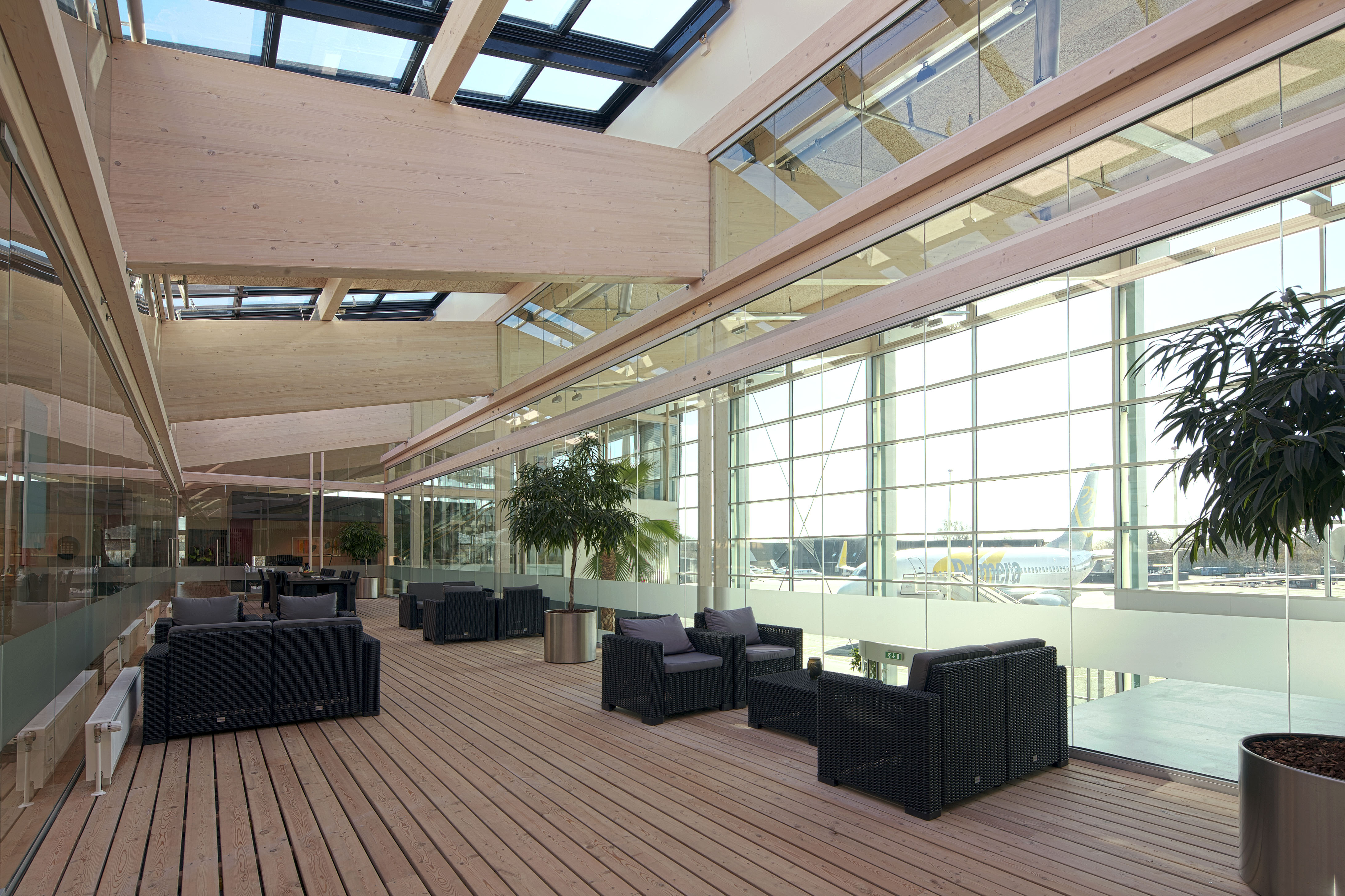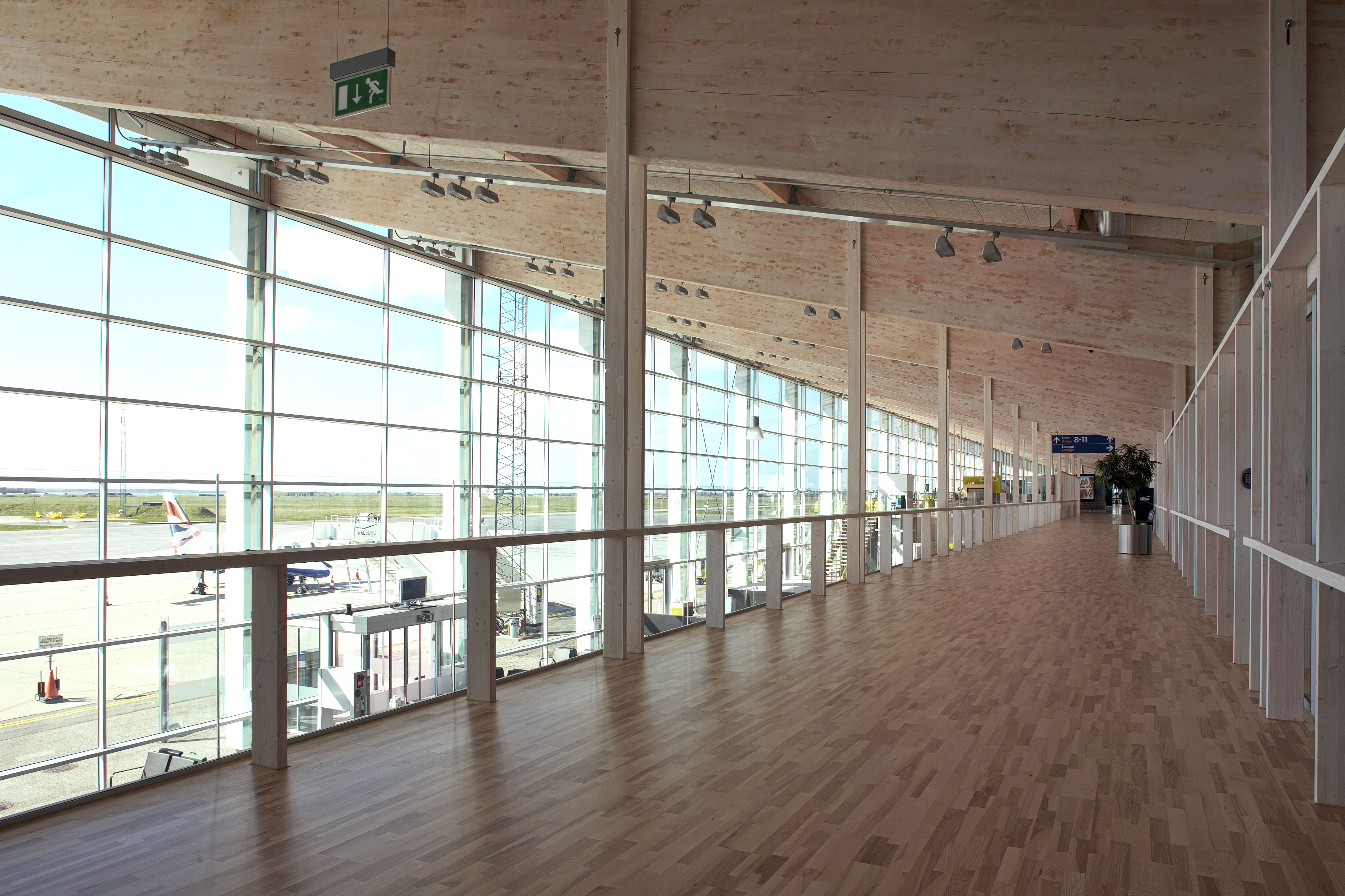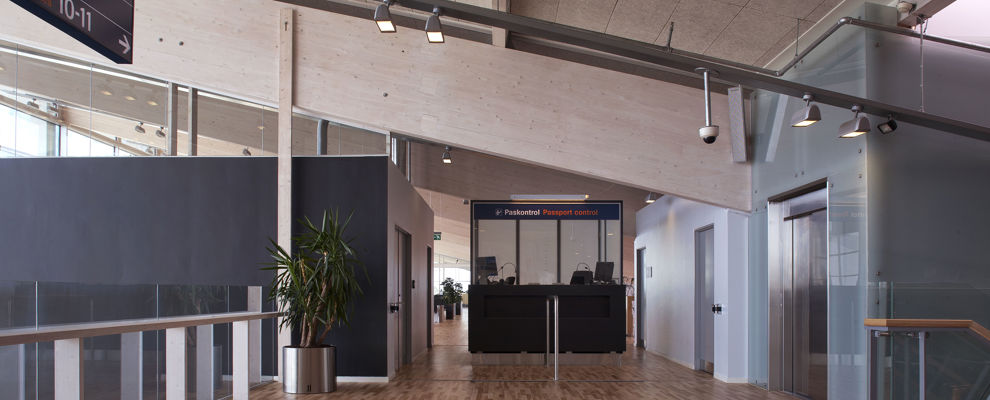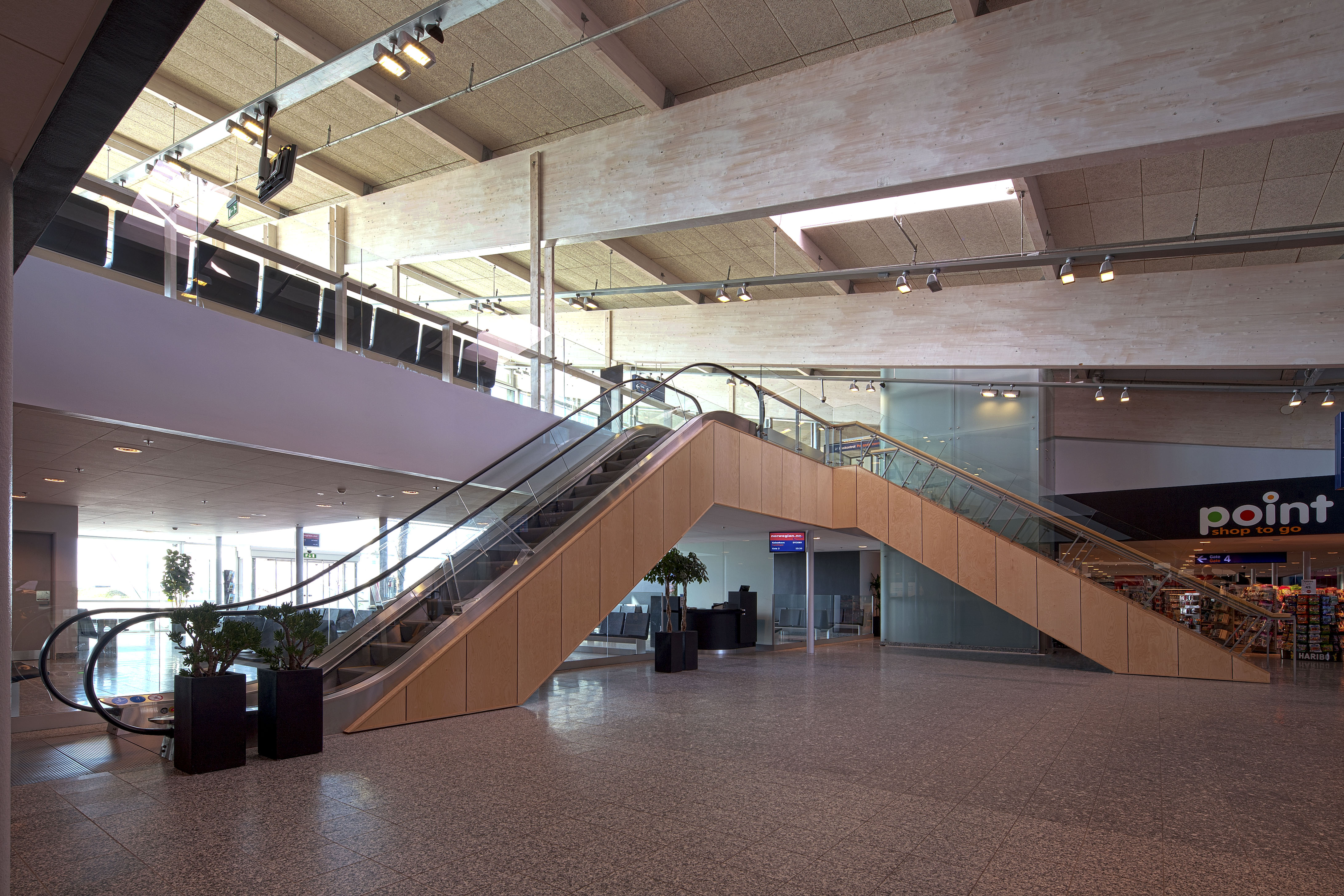 Terminalen blev organiseret omkring en gennemgående vandrehal, som skaber klar orientering og deler bygningen i airside og landside. Der er arbejdet målrettet med fleksibilitet og åbenhed, så planløsningen kan tilpasses lufthavnens skiftende behov over tid. En let og luftig konstruktion kombineret med afklaret logistik gør terminalen til et funktionelt og behageligt sted at opholde sig – både for rejsende og medarbejdere.
