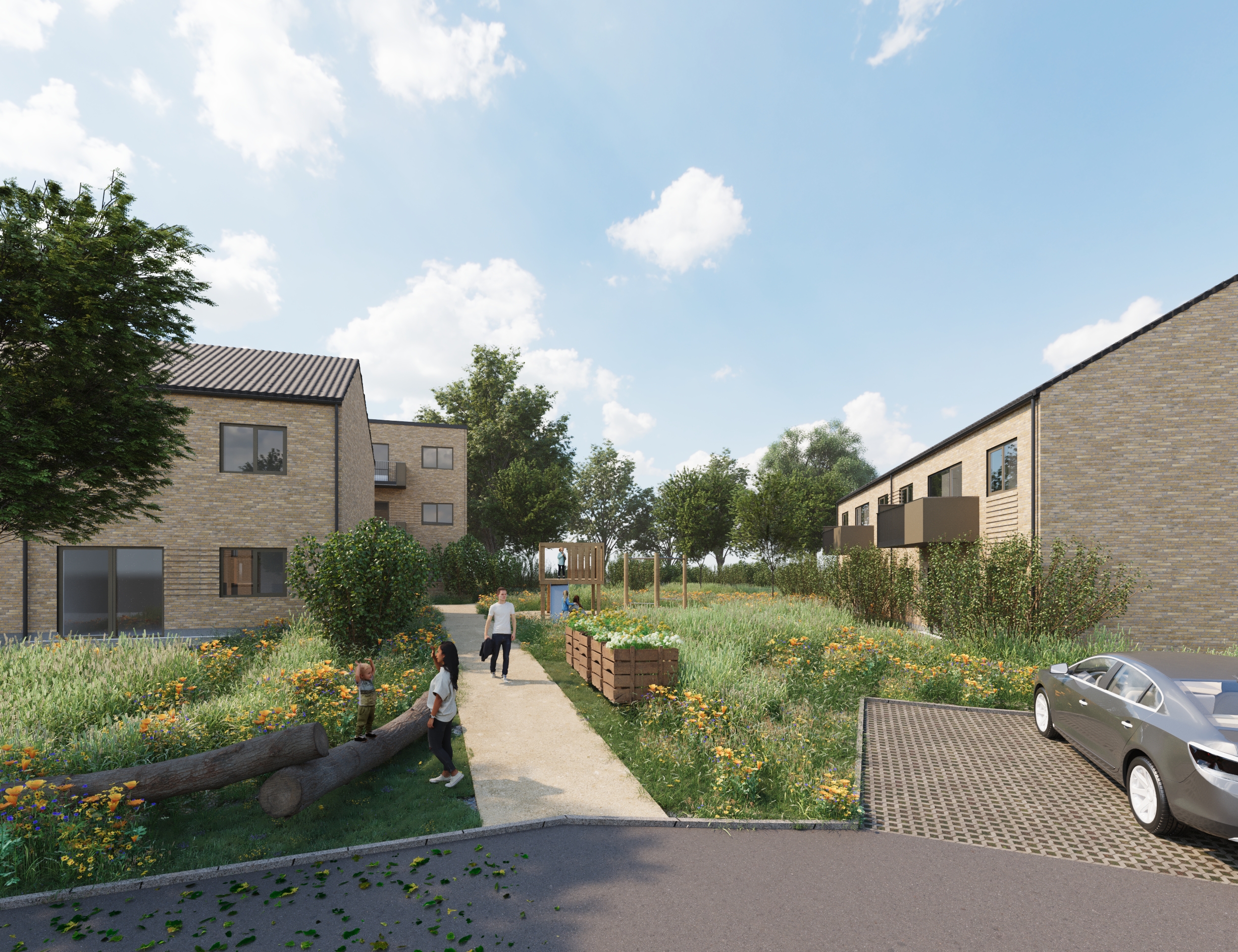 Murstenenes nuancer er med til at skabe et sammenhængende billede med de omkringliggende naturrige arealer. Boligerne og bebyggelsernes placering lægger op til at der skabes mindre fællesskaber indenfor det samlede fællesskab.