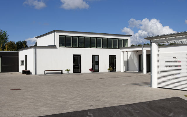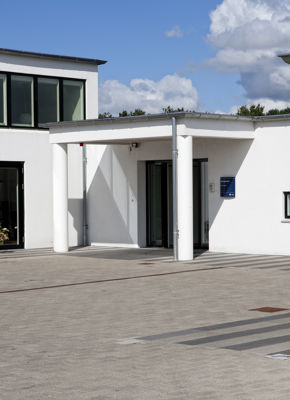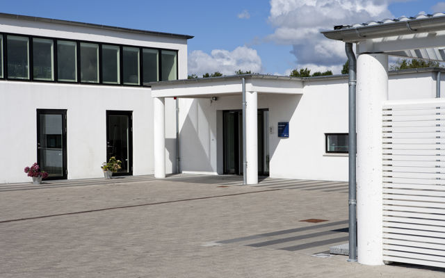Forpladsen samler såvel hovedindgangen, som den store fællessal, der vender direkte ud mod pladsen. Arrangementer i fællessalen kan således brede sig ud på forpladsen, og bidrage til at skabe liv og aktivitet. I forbindelse med forpladsen er der desuden placeret et dagaktivitetstilbud, som en selvstændig bygning på 190 m2. Her huses fysioterapi og forskellige aktivitetsrum som kreativt værksted og musikrum.
