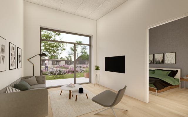 Boligfællesskabet består af to-tre-værelses boliger på 65 m2 og 90 m2 , alle med egen terrasse og have. Derudover er boligerne placeret tæt på parkering og med direkte forbindelse til grønne uderum. Boligerne fremstår med et moderne udtryk med en varm farvepalet af materialer, hvor de fleste boliger opføres med mørke træfacader, med detaljer og åbninger understreget af lysere træbeklædning.