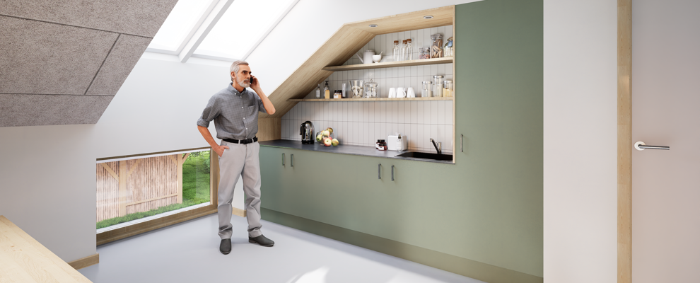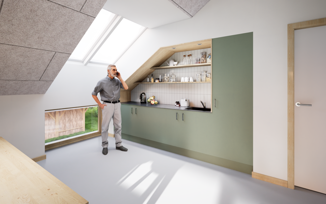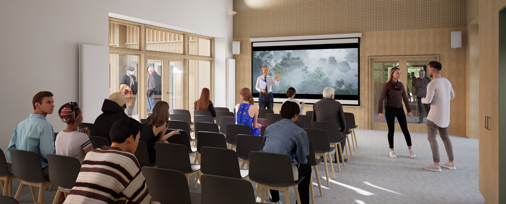 Den eksisterende bebyggelse transformeres helhedsorienteret, hvor konstruktion, indretning og klimatiske forhold opdateres og nytænkes i én samlet løsning. Den nye ydre ramme og de opgraderede bygningsdele giver huset et markant løft – både i kvalitet, bæredygtighed og levetid – samtidig med, at bygningens oprindelige karakter og historie fortsat er tydelig. Det overdækkede uderum rundt om huset skaber en stærkere forbindelse mellem inde og ude og giver mulighed for ophold og aktiviteter året rundt.