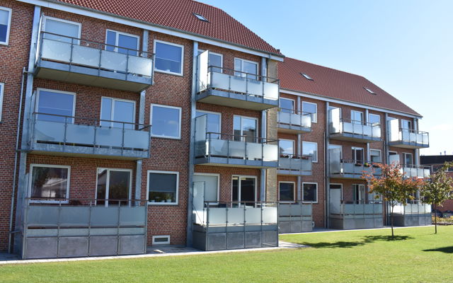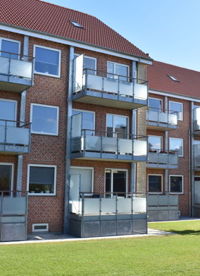 Altanerne er udført i galvaniseret stålskelet og ophængningssystem med bund i skrid-hæmmende fiberbeton. Værn er galvaniseret med håndlister. Derudover er værn af hærdet, lamineret glas med hvid folie ilagt. Adgang til altanen foregår gennem stue og igennem træ/alu dørpartier med flade bundstykker, der gør det kørestolsvenligt.