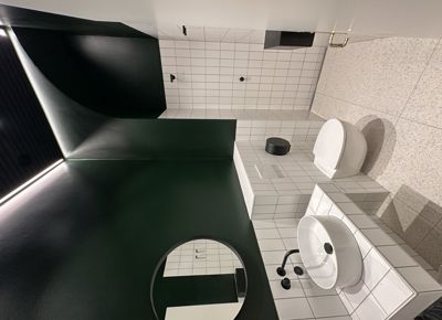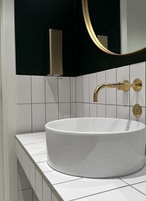 Toiletterne skulle være beliggende i den gamle hovedbygning, der fremstår som et rigtig fint eksempel på datidens byggeskik. Der var derfor vigtigt at de nye toiletter og baderum blev indrettet med fokus på den daglige drift, men ikke mindre vigtigt at disse blev indrettet og farvesat, så de passer med den kontekst som faciliteterne er placeret i (den gamle hovedbygning).