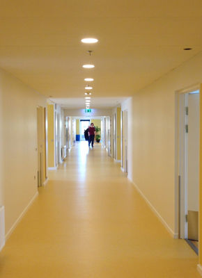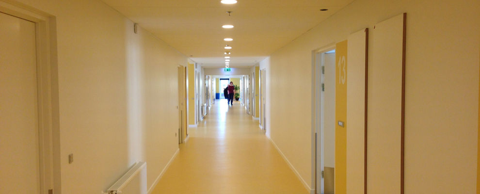 Nybyggeriet er sammenbygget med den eksisterende, ældre og eksisterende del af plejehjemmet Vestergården.