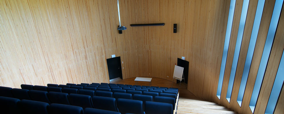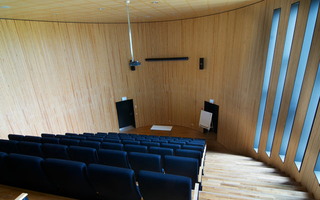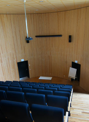 Auditoriet er placeret således, at der er direkte adgang til det både fra publikumsarealet i forbindelse med museets foyer og fra udstillingsområdet.