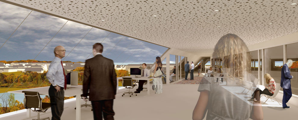 Arkitektfirmaet Nord har i samarbejde med TLC Ejendomme udarbejdet skitser for disponering af ca. 13000 m² erhverv og P-kælder på ca. 2900 m².